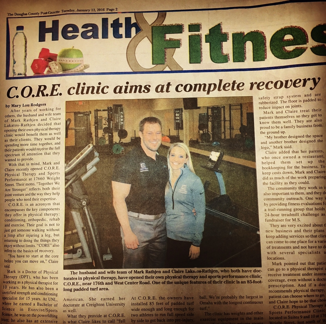 Core Physical therapy in Omaha was founded in 2015 by Mark and Claire Rathjen. Together, they have grown the largest outpatient facility that is privately...